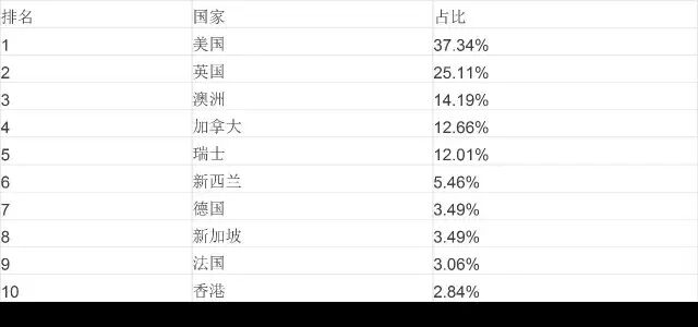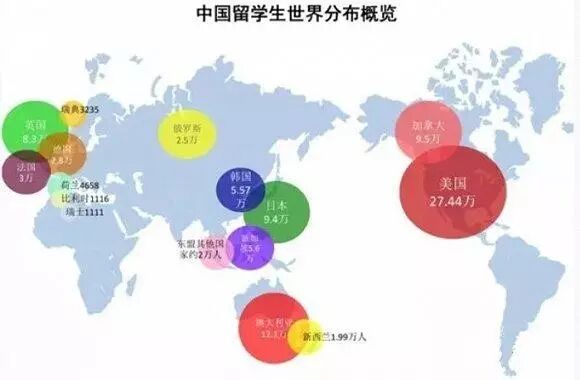 胡润百富对458位个人资产在一千万元以上的中国家庭进行调研,评选出了最受高净值人士青睐的Top 10 留学目的地,美国、英国、澳大利亚分列前三位,这与三个国家给出的数目庞大的中国留学生人数(官方数字)表现出强烈的一致性。